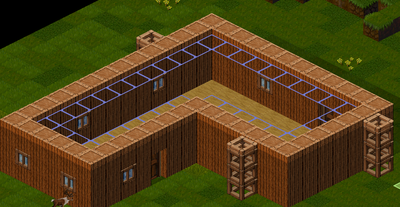 6、发展到中期,要做到每个人一间屋子很占地,所以要考虑建楼房。楼房可以往下挖,也可以往上建,往上建的话要先建好一层(可以占用多个层)的墙体,在楼板处一圈一圈往里建墙体,为何成一整片石块墙后,+1层后就可以布置区域了,以此类推,脚手架在开门处做楼梯,比建台阶还方便。