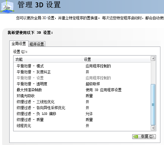 第一:玩家进入N卡设置面板-管理3D设置