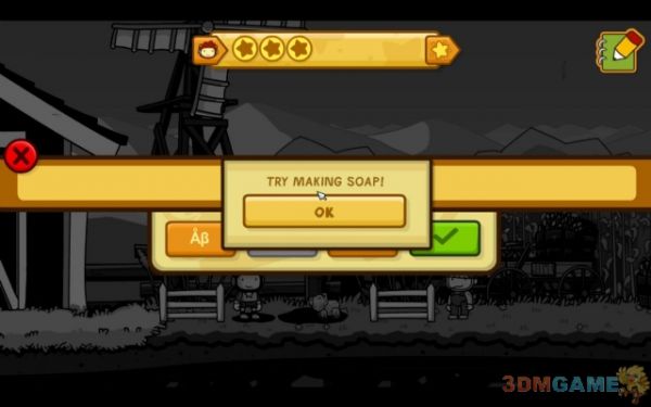 如果你输入的单词不对,游戏开始之初会在你确认输入给予相应的提示。如第一个你需要输入SOAP,创造出来肥皂来给小猪清理