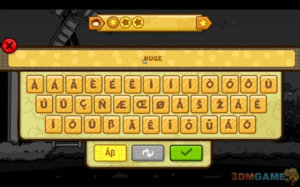 输入框下有四个选单。第一个是切换到键盘,第二个则是调出之前输入的英文;第三个对话框图标则是一个比较重要的玄霄。该选单会依据你目前输入的单词,在游戏库中对应的英文相似栏列出列表让你选择。