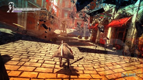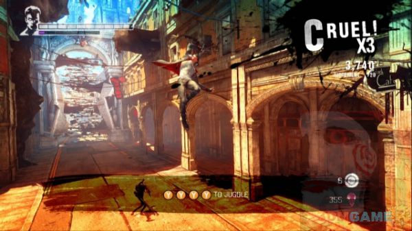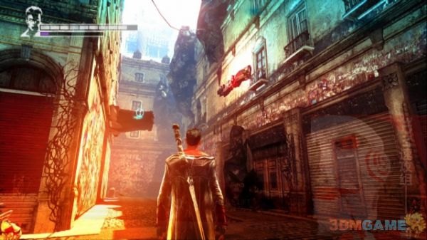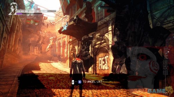 2.主角Dante进入城市后,一路跟着Kate的影像,途中遇到的小怪,屏幕会有相应的键位提示。