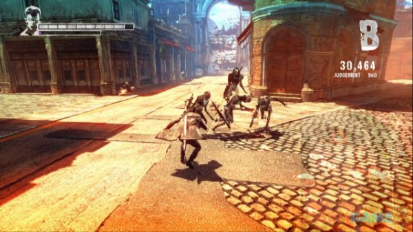 4.按LT+A 空中滑翔,来到中央喷泉,出现攻击力,防御力较高的敌人。注意:当敌人身体变金色时,会释放连续技,蓄力之前可以打断。