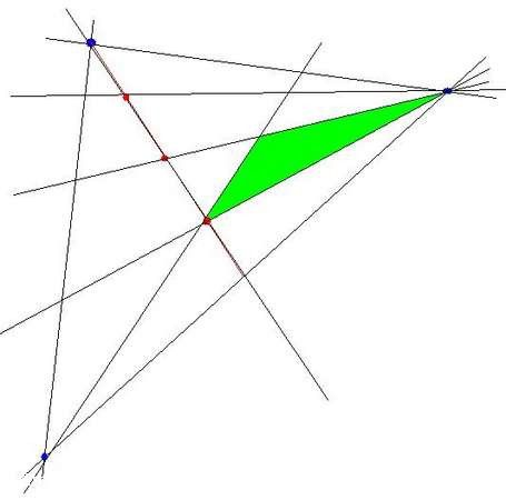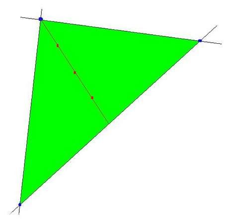 然后就找最长边作平分线,在线上能放多少放多少,这样的好处是,可以把绿色区域定位到一个很窄的长条形区域,