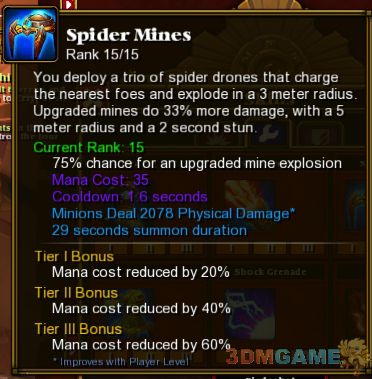 由于蜘蛛和狂雷天牢伤害基本已经可以扫清地图,只有在高难度下才需要使用到火系的几种天赋