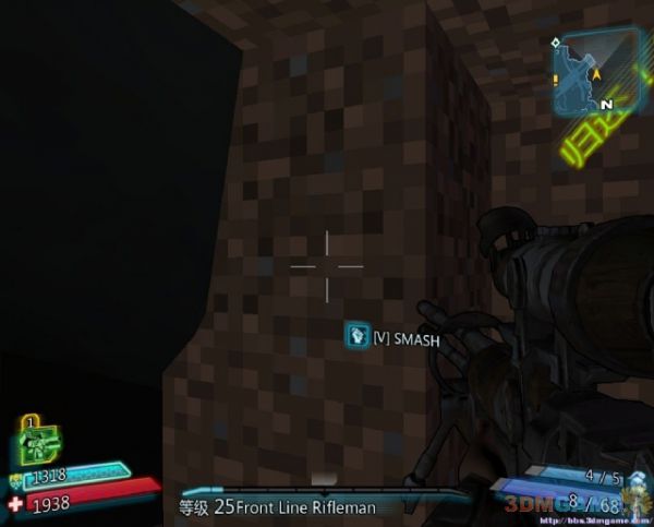 眼熟么。。。没玩过也知道是我的世界。。。 走过去开始凿墙吧 有提示 按V