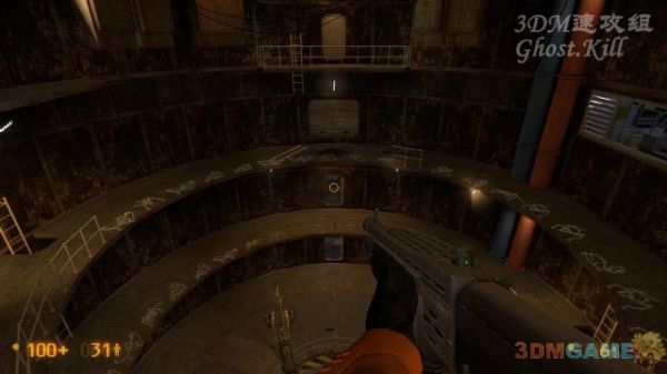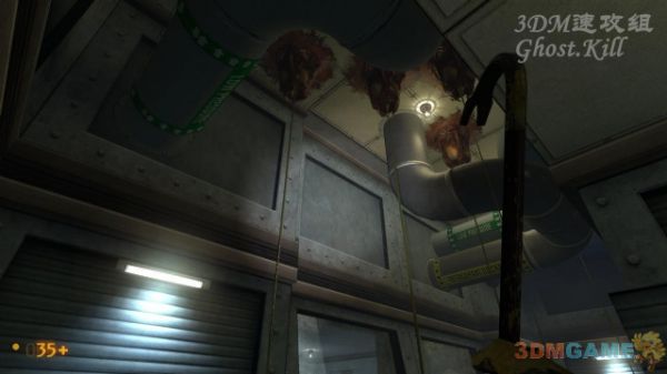 这个房间可以踩着这些箱子进入通风管道,管道里没有怪,到尽头处跳下去是一个警卫室,打开电闸后离开房间,坐货运电梯下楼。下楼的途中会不断地有猎头蟹从天而降,非常难对付,乱蹦乱跳的很难打,用枪太浪费子弹,最好用撬棍。