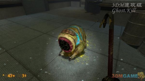 由于只玩过HL2系列的,没见过这玩意,不知道叫什么,目测是通过声波攻击的,据称其为声波怪吧。通过藤壶怪后的房间就突然破窗而出,立刻冲上去用撬棍敲死,还有几个猎头蟹,轻易可以干掉。