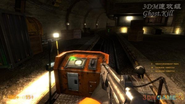 沿着铁轨回去,这里有两辆轨道车,随便找一辆上去,按E然后按W前进,接下来控制室的警卫会帮着调整轨道,我们什么都不用管了。穿过隧道会被路障挡住,下车进入警卫室开启路障,继续开车上电梯过关。