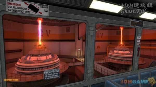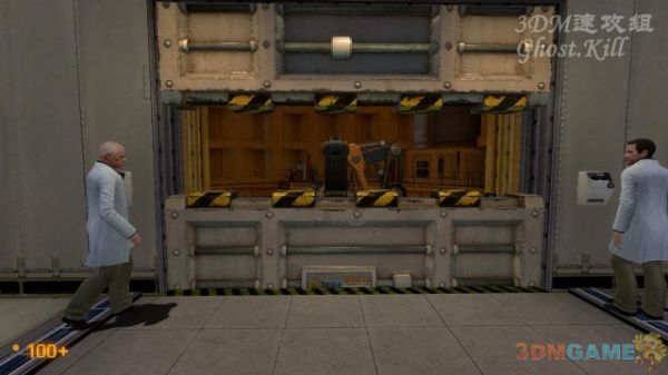 到了隔壁房间发生了点意外,丢下博士直接坐电梯下楼。继续沿着走廊来到图中房间,等着两位博士开门后进去。爬梯子到高层,先听两个博士的废话,然后使用控制台开启房间中央的机器。