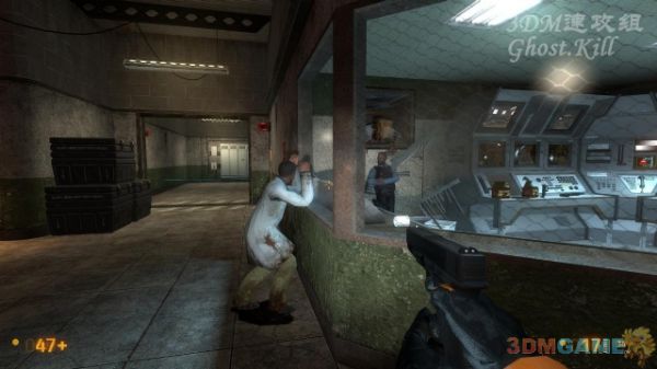 醒来后房间里已经一片狼藉,使用视网膜扫描器开门,按Ctrl蹲着出去。返回刚才两个博士所在的房间,路上按E移开挡住电梯的障碍物。和他们对话后其中一个人会帮着开门。继续去找上楼的电梯,路上激光什么的都要避开,没什么难度。僵尸目前还不需要打,障碍有些需要大跳才能翻越(跳加蹲)。
