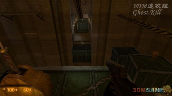 干掉后游泳到对岸,爬梯子来到高层,这里从一个又一个的箱子上跳到对面,距离远的按shift减速跑跳。这里通过后再次来到电梯前,坐电梯进入第四章。