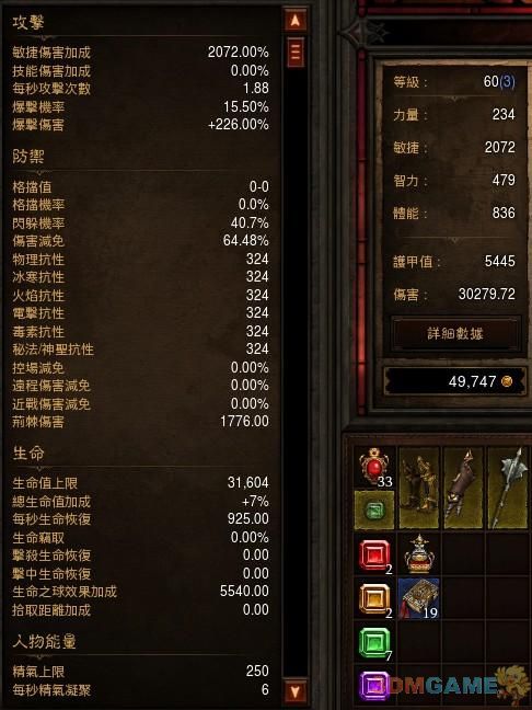 于是,我的攻速达到了1.88,暴击几率和伤害不高,但是够用了。