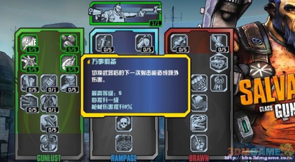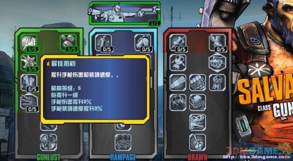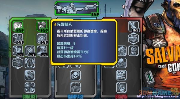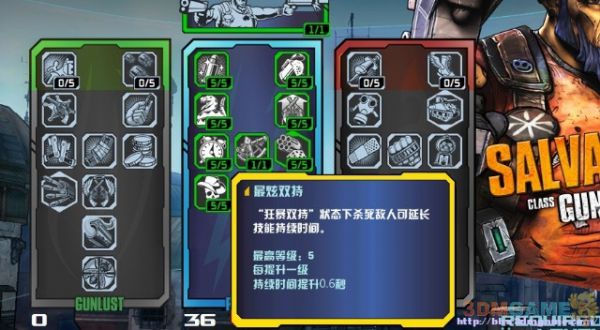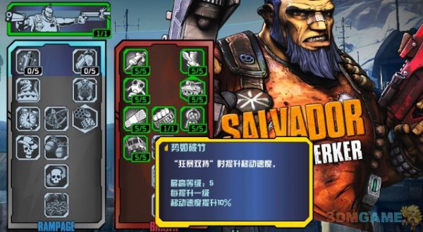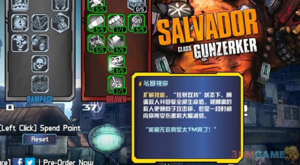 《无主之地2》狂抢手SALVADOR技能树汉化