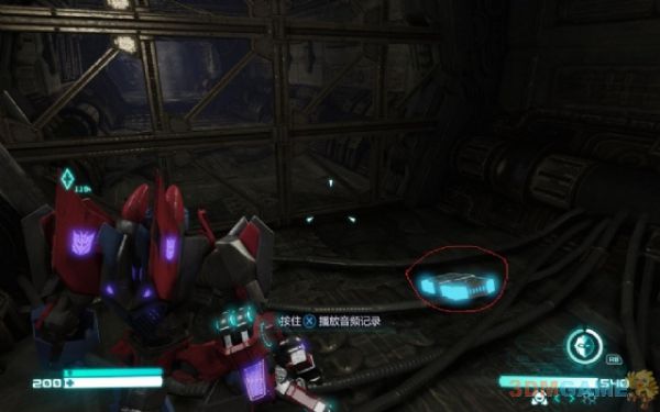 音频四:与泰坦汽车人战斗的那个房间右边,变成汽车形态,从小窗子跳进去,音频记录就在里面