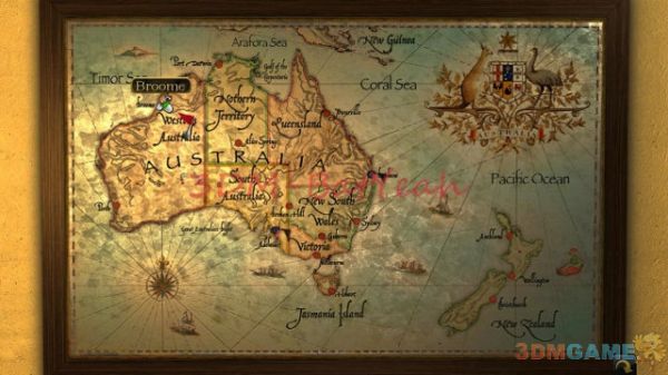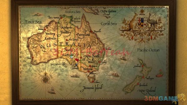 之后进入卧室,观察卧室的澳大利亚地图,将四个标尺分别插在Adelaide Brisbane Broome Hobart四个地点,之后发生剧情;密室出现,妮娜捡取到MAX在博物馆办公室的钥匙