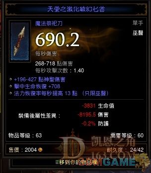后来基友一见我换了build就深感不爽,认为效率下去了。我也很不爽,每次换build,都要换装备,非常麻烦。单刷用呕吐是效率较为低下的。后来有一天尝试着用呕熊流,配了大军,灵行,收割跟恐惧吧,反正是4cd,400抗,3800甲,3.8w血,dps只有1w,用的刀是这把