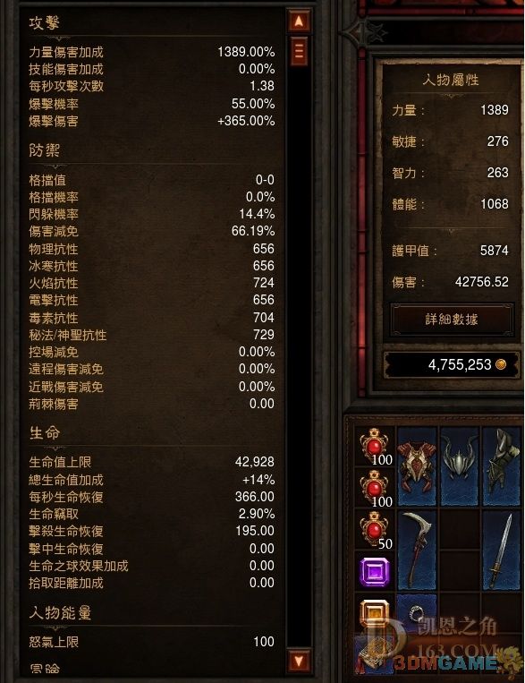 暴击 = 头盔6% + 手套10% + 护腕6% + 护身符8% + 戒指4.5%*2 + 腰带1% = 40%暴击(大概,最高属性我不了解)