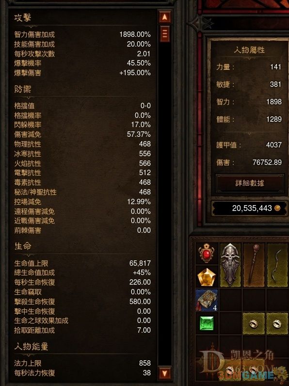 得到的:现在上升到7.4的dps(加盗贼后为7.68万),得到的是久违的2.01的速度,全抗基本不变维持4-500