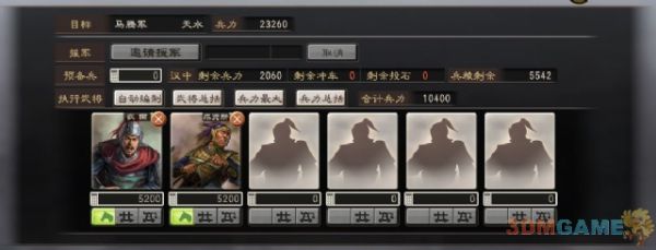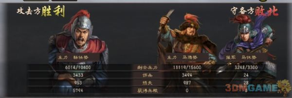 战斗解说:此超强阵营6000精兵足以将马腾吓到屁滚尿流,龟缩到城里不敢出来,是经过多次测试的结果。如果不带张鲁的枪兵而使用其他兵种的人,则无法起到震慑马腾的作用,马家军会倾巢而出,后果不可想象。本着不浪费的原则,在我方士兵相对少的情况下,敌人也会省着出兵的,所以第一战如出兵太多,不仅占不到优势,还浪费了大批军粮,往后张鲁一干人马就只能在家种地了。