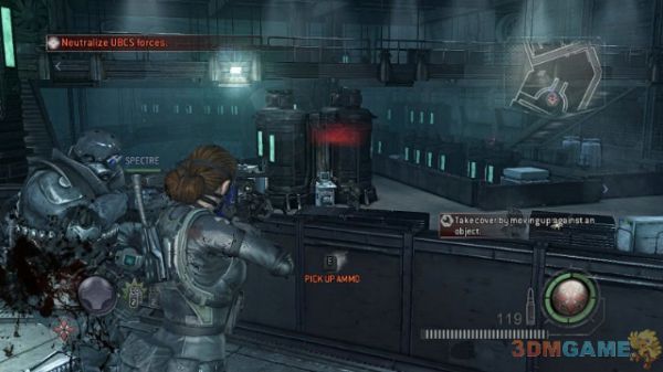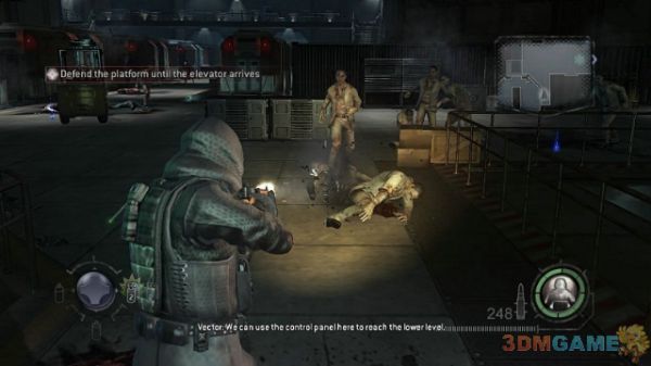 下面就是一路消灭掉出现的UBCS直达电梯逃离整个区域。这里要说明一下游戏的设定,游戏的设定是每个剧情关键点(也就是游戏自动保存点,即使你此时关机下次继续游戏也会从最近保存点开始)必须让你的所有队友处于非脱离状态。由于游戏内的大部分场景,你把所有怪物清理完毕就基本不会自动刷新,所以保持队友完整不是很难