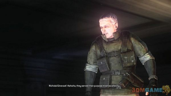 来个场景可见到本作品我们的第一号BOSS级别敌人Nicholai Ginovaef,冷血无情的佣兵队长,一阵寒暄继续前进