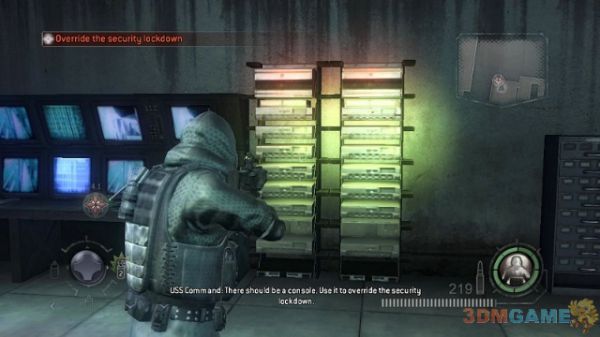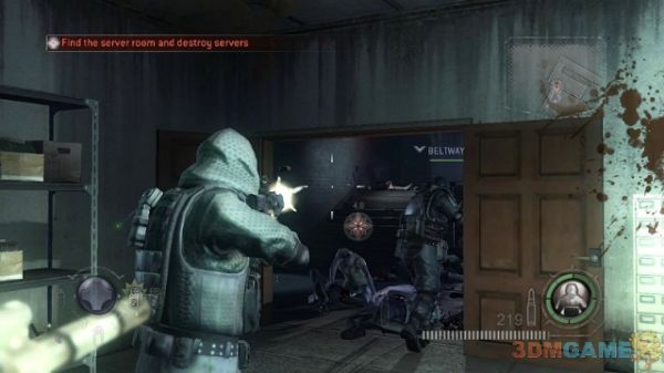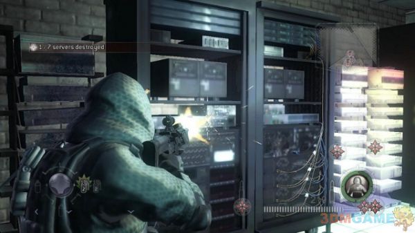 来到服务器中心,射击服务器摧毁所有的资料。然后从右侧的门继续前进