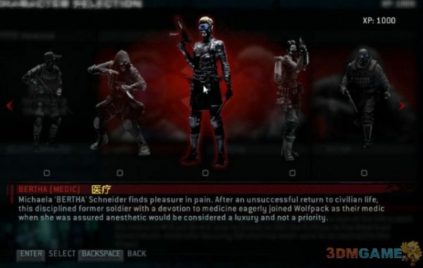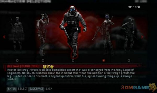 整个游戏的模式类同与《求生之路》系列.你可以在六个不同类型的人物挑选四个进行整个游戏过程,并且控制其中的一位;具体的各个人物解析在后面放出
