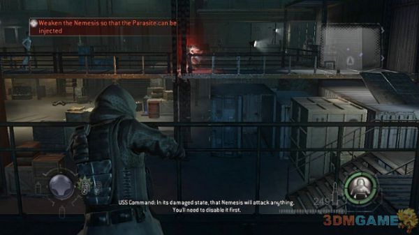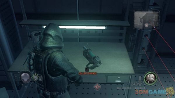 启动NEMSIS的程序比较麻烦。首先你需要去房间的右边关闭红外保护激光,然后在去右侧的平台找到一个大注射器与NEMSIS互动,从中提取寄生虫