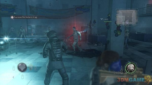 来到大堂演讲厅,这里是最后的BOSS关卡了。疯子NICOLAS放出来大量的舔食者企图干掉安布雷拉对策部队