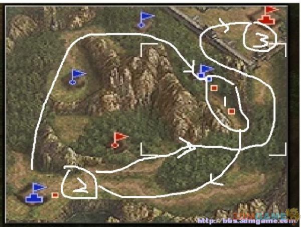 在解决大部队后回头在家(3)解决了偷家的1队弓箭,家里的守军数量直接决定了你跟大部队纠缠的时间,你本阵兵越多前线操作空间越大,之后就是在城门严白虎加攻破城,GG