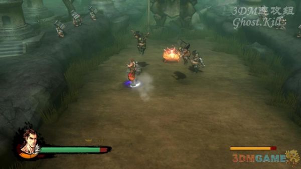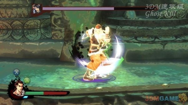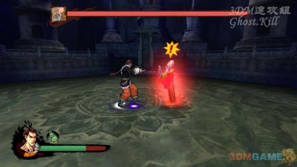 杂兵杀光后面前的巨大石像化身为BOSS,普通攻击有效,必杀可以让他僵直,