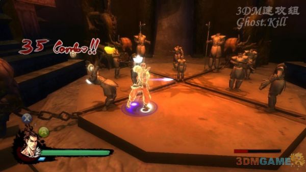这一关比较蛋疼,建议开始之前一定要买空中防御的技能。敌人数量很多,而且拿棍子的很贱,攻击距离长,滚着很难躲开,只能防御,但他们攻击频率又太高了,所以很难打。一开始先出来两个拿棍子的练练手,不要贪打,看到他们接近的话就准备防御。