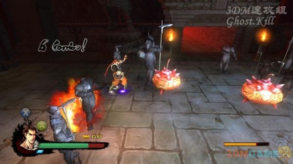 成群的吸自己的血涨的超快,拿长矛的敌人杀光后不要杀扔炸弹的,等BOSS出来后他们会帮着打,