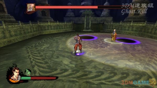 一边躲着两个紫色区域一边攻击,干掉方丈过关。