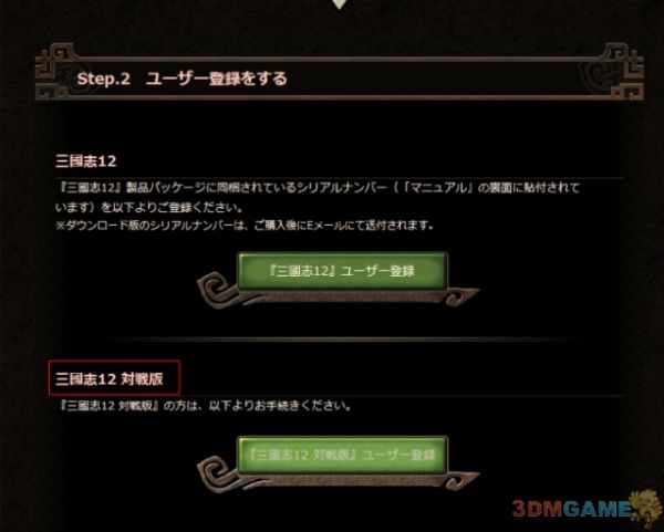 之后就是进行STEP2激活了,点击“三国志12对战版”下方的绿色按钮