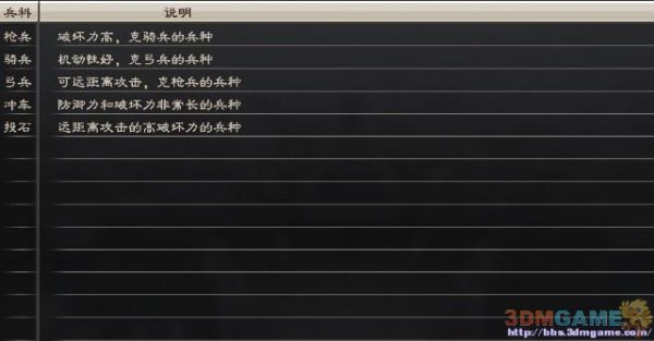 首先,兵种分为:枪、骑、弓、冲、投