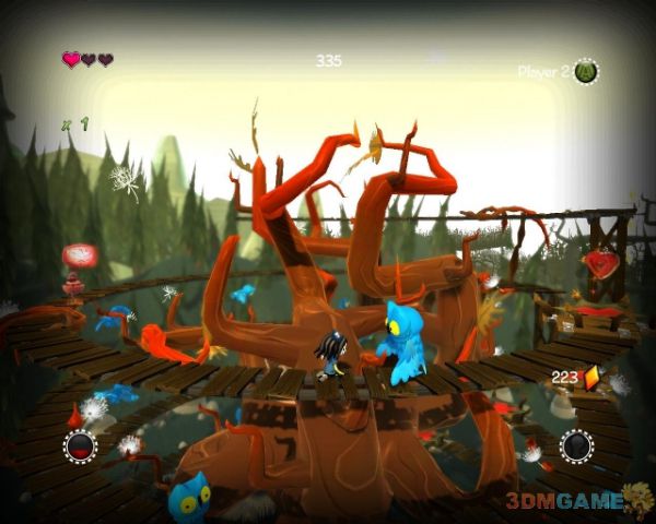 一路清理掉众多的山羊和鸟.来到山上之后躲避鸟清理杂兵,前方会出现加强版的山羊(首领?)别让他靠近攻击即可