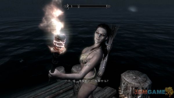 所以我就只能跟着老婆,看她到底往哪儿走,出乎我预料的是,她根本没走大门去黑光塔,而是向裂谷城港口走去,等走到了湖边,看见她打着火把,楚楚可怜的望着湖水就停住了,大有“天下之大,何处才是我容身之处”的感慨(不会是要跳吧,做过她任务知道她孤苦伶仃,还被亲生母亲出卖),我正在想很可能完成不了任务了,没想到一接近她,出现“任务完成”。她还来了一句“亲爱的,你想要什么?”