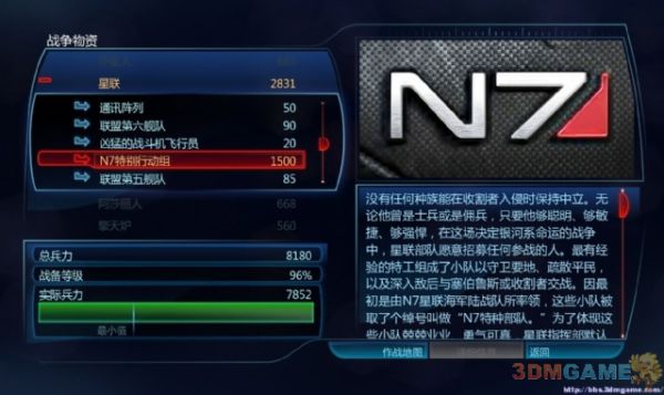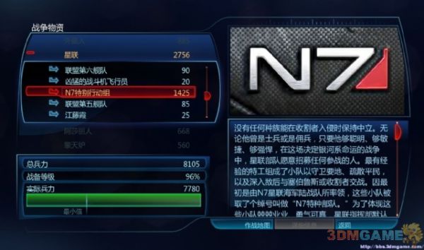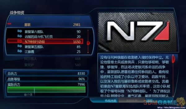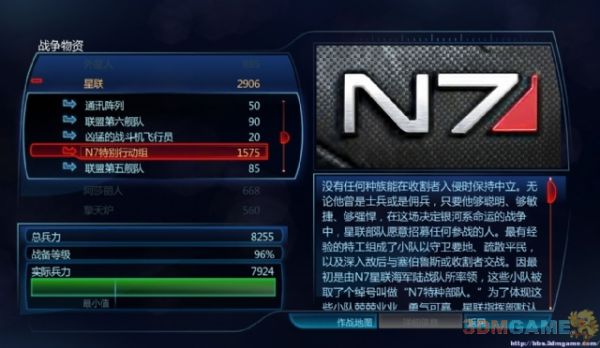兵力值查询: 战争物资——星联——N7特别行动组,系统不设置上限。