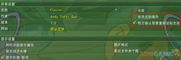 然后进入游戏设置——显示与音频设置——使用皮肤缓存不要勾,每次确认需要重新读取皮肤勾上(可能会有翻译上的细微差别)。进游戏之后,效果就有了。