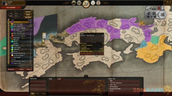 幕府2武家之殇联机加入了战队联赛机制,战队之间可以在互相竞争,目标就是图中的日本地图,看哪个战队抢占的地盘多,根据不同战队的等级和规模,系统安排不同级别的联赛(幕超、幕冠、幕甲),并设置升降级机制,各战队的信息和排名都可以通过排行榜查看到。