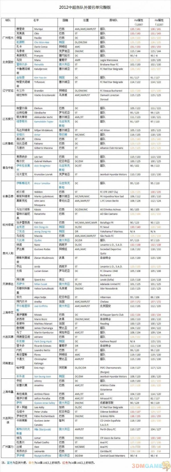 列表包含了12.0.0版本跟12.2.0的数据库对比,总结来说阿内尔卡是中超第一牛人,而广州恒大的外援是整体质量最强的。大家开档中超了吗?