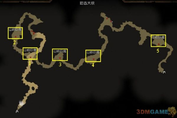 打完哈吉大坝会出现在1~请先走下来把2的怪清光~再走到3时~4的怪就会出现~