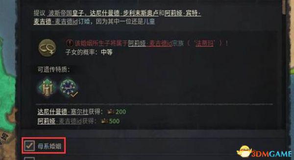 还有一点是母系婚姻选项,勾选之后生下的后代属于母方,