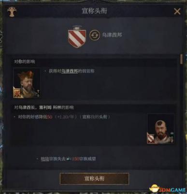 第三个整合头衔技能非常强大,可直接将其它王国或帝国的头衔整合至我方,使其法理上成为我们的领地。