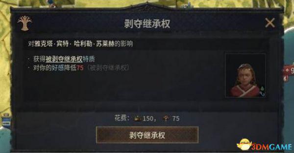 第一种解决方法是剥夺继承权,需要消耗一定的威望和宗族威望。