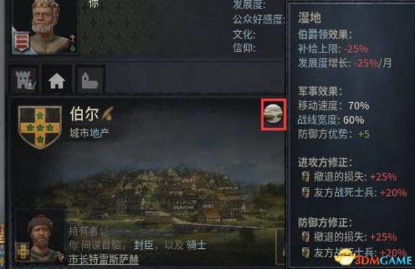 选择任意一处领地,即可查看该区域的地形以及对军队的影响。
