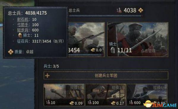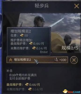 如果觉得兵士军团规模太低,可以花费一定金钱提升规模。