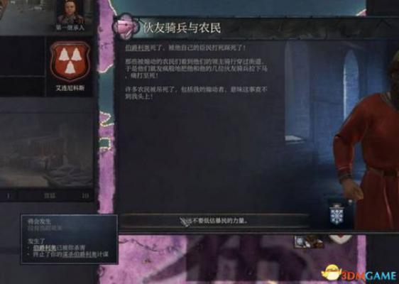《十字军之王3》攻略,玩法技巧进阶攻略,内阁宣战密谋生活方式压力特质关键词详解(含“政体制度/继承详解”“宣战/战争/密谋”“部队兵种/战斗技巧”)。《十字军之王3》是P社著名系列《十字军之王》的最新作,该系列是中世纪背景的大型策略类RPG。游戏中,你将会成为国家的管理者,在欧洲大陆上开始征战一生的传奇。游戏系统复杂、丰富,策略性和各种要素非常充实,很对策略游戏爱好者的胃口。本作由2D扁平地图改为3D地形图,人物形象也采用了3D头像,新UI的启用也给游戏带来了很多新意。