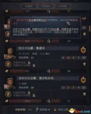 然后是关于封臣,如果我们想要授予某个封臣一个公爵头衔,